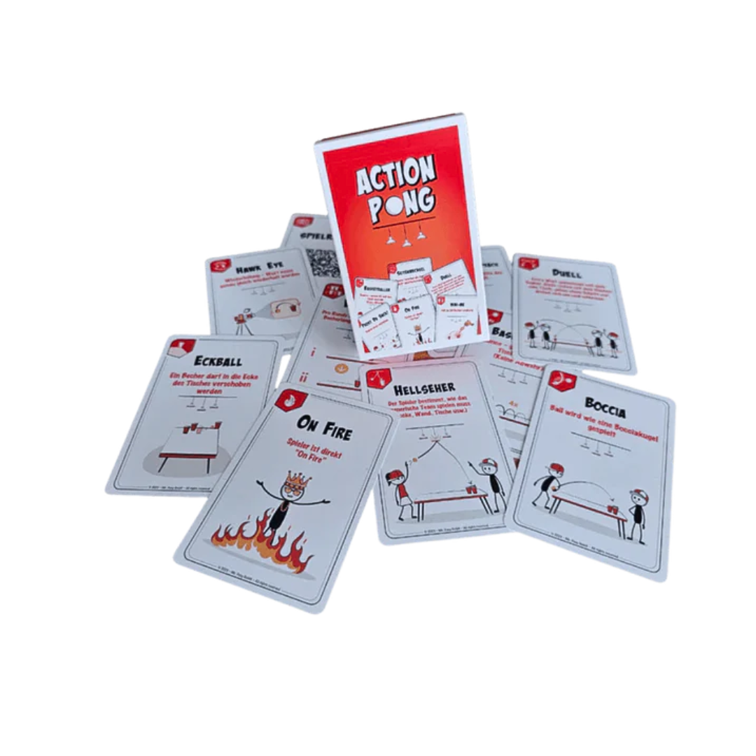 Ob spontane Duelle, Seitenwechsel oder zusätzliche Chancen – Action Pong macht jede Runde einzigartig und sorgt für unvergessliche Momente mit Freunden. Wer clever mit seinen Karten umgeht, kann selbst aus einer scheinbar verlorenen Partie noch einen Sieg machen.
