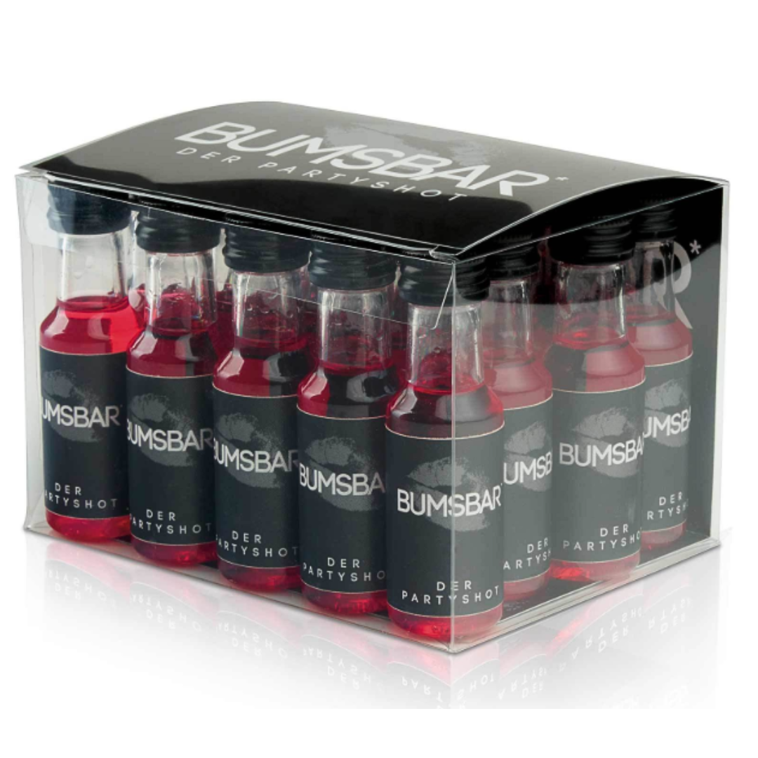 Mach den Hit zum Shot und die Nacht zur Legende! BUMSBAR ist der offizielle Party-Likör zum Megahit von Ikke Hüftgold, DJ Robin & Schürze. Mit 16 % vol. Granatapfel-Power sorgt er für süß-fruchtige Eskalation von der ersten Runde bis zum letzten Refrain. Ob als 0,7 L Flasche für große Runden, 20er PET-Pack für unterwegs oder 20er Glasbox fürs Tablett – BUMSBAR passt immer. Dieser Likör ist mehr als ein Drink: Er ist ein Statement, ein Partyaufruf und der Soundtrack deiner Nacht – in flüssiger Form.