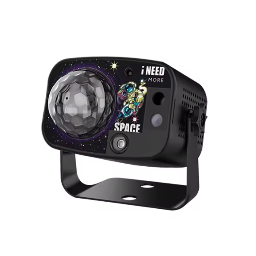Die Kombination aus RGB-LEDs und rotem & grünem Laser erzeugt beeindruckende Muster, die Wände und Decke in eine bewegte Lichtshow verwandeln. Über die mitgelieferte Fernbedienung steuerst du Farben, Geschwindigkeit und Modi bequem aus der Ferne. Der USB-Anschluss macht das Gerät flexibel einsetzbar - ob an Laptop, Powerbank oder Steckdose.
