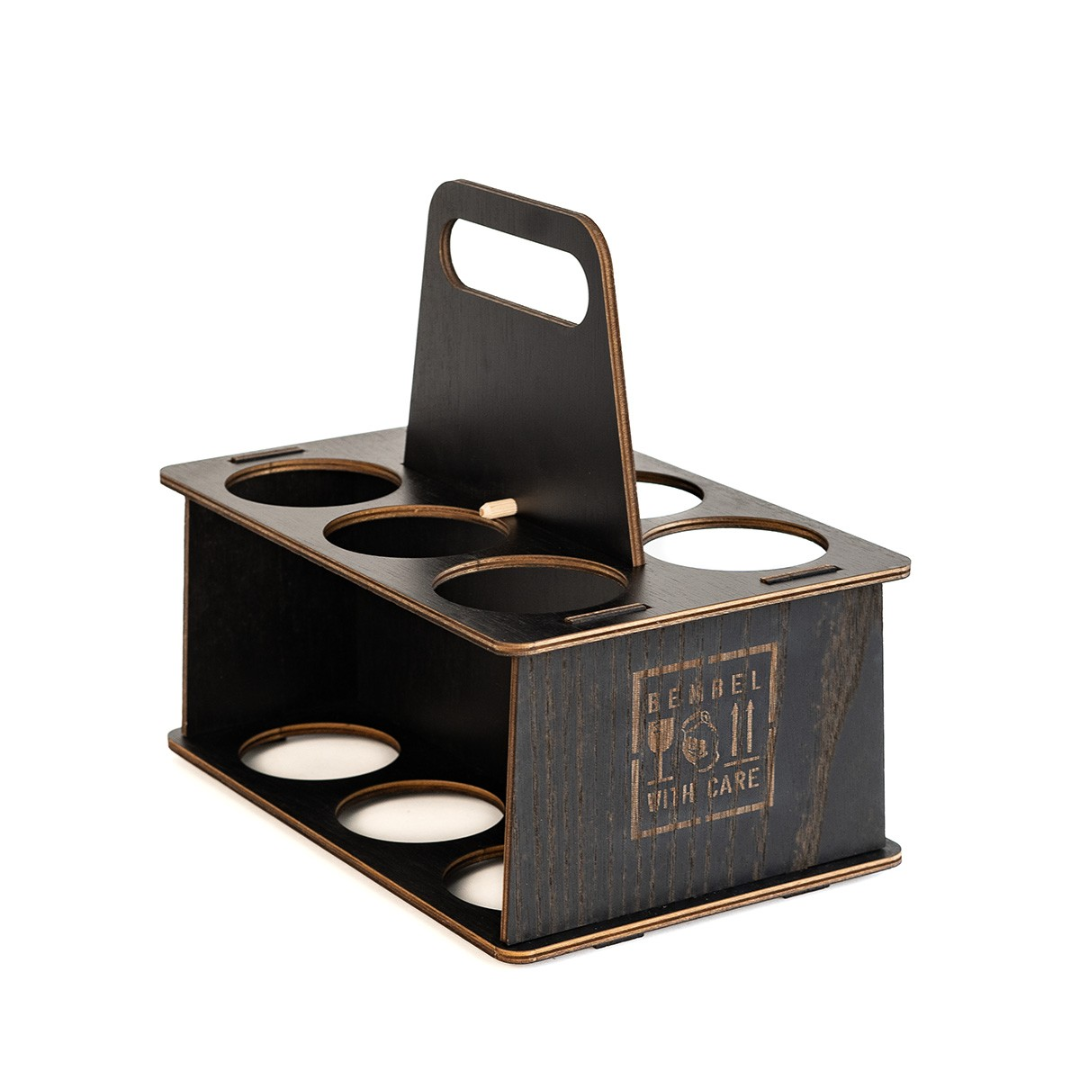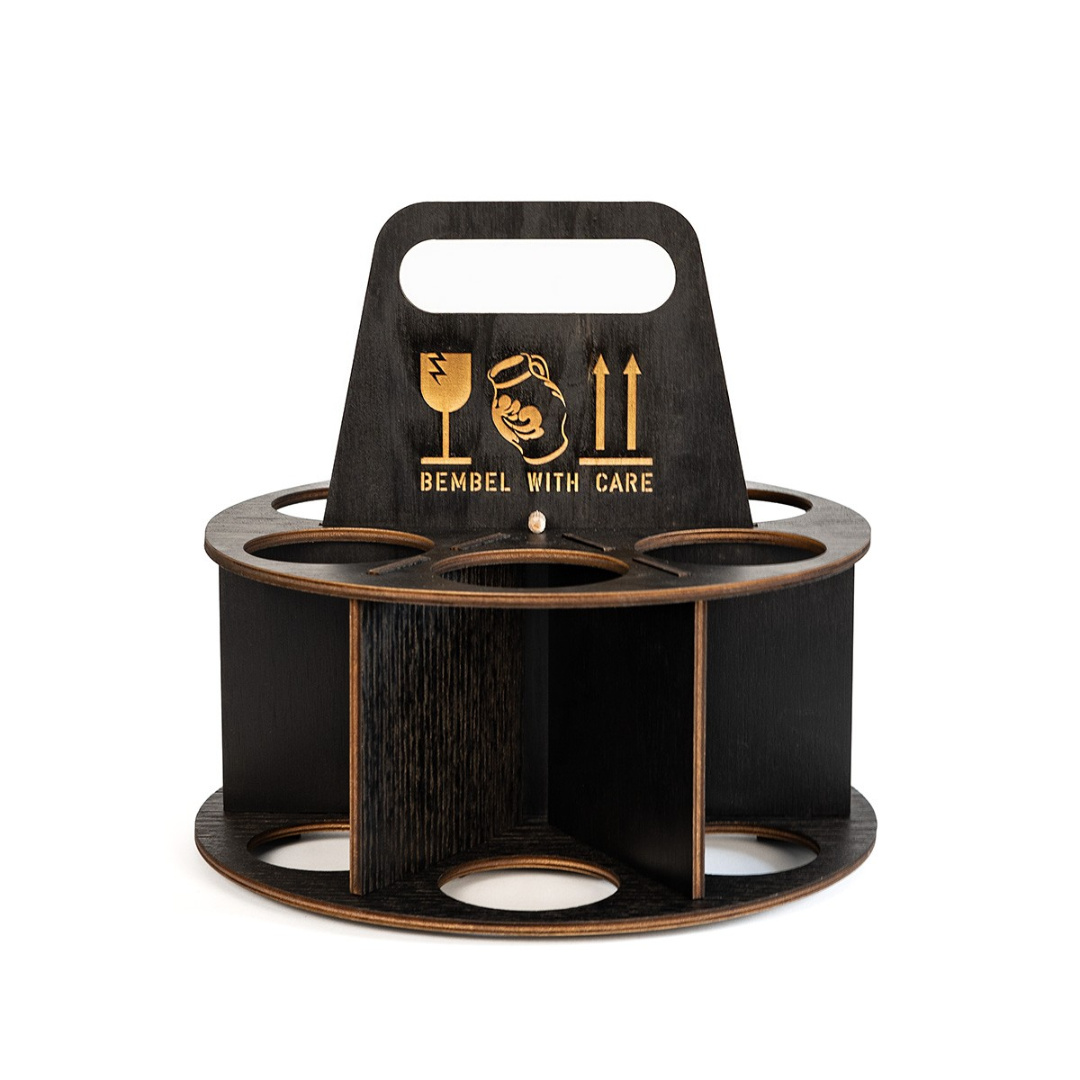 Warum nur eine Dose tragen, wenn’s auch sechs sein können? Mit dem Bembel mit Style 6er-Dosenträger aus edlem, schwarz lackiertem Furnierholz trägst du deine Lieblings-Apfelweindosen stilvoll, stabil und mit echtem Bembel-Flair – egal ob auf dem Festival, beim Grillabend oder auf der Gartenparty.