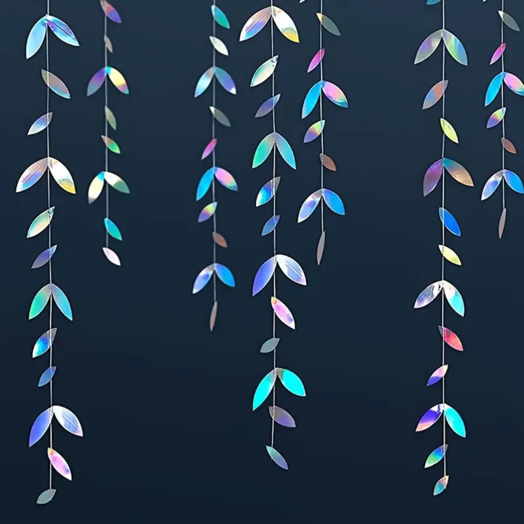 Mit der holografischen Blättergirlande bringst du eleganten Glanz und funkelnde Highlights in jede Partydekoration. Die irisierenden Blätter reflektieren das Licht in wunderschönen Regenbogenfarben und schaffen so ein edles, modernes Ambiente – perfekt für Geburtstage, Partys, Hochzeiten oder Neon-Themenabende.