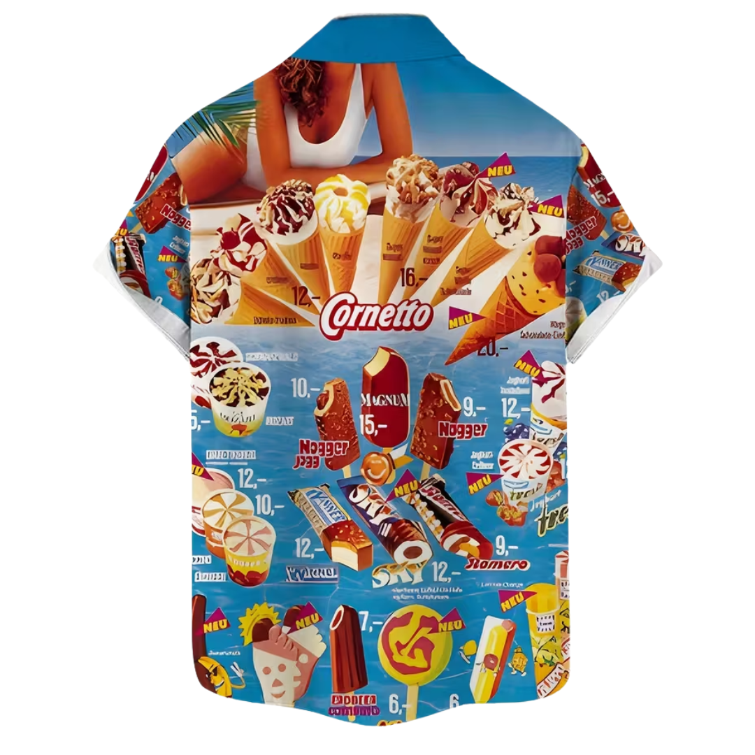 Mit der HOT ICE Kollektion bringst du frische Sommerstimmung in jeden Look. Die klare Formsprache und die charakteristischen Eis-Prints greifen den Charme klassischer Eiskarten der 90er auf und setzen ihn modern um. Ob einzeln getragen oder im Set kombiniert: Hemd, Shorts, Fischerhut und Socken erzeugen einen stimmigen Auftritt, der sofort ins Auge fällt.