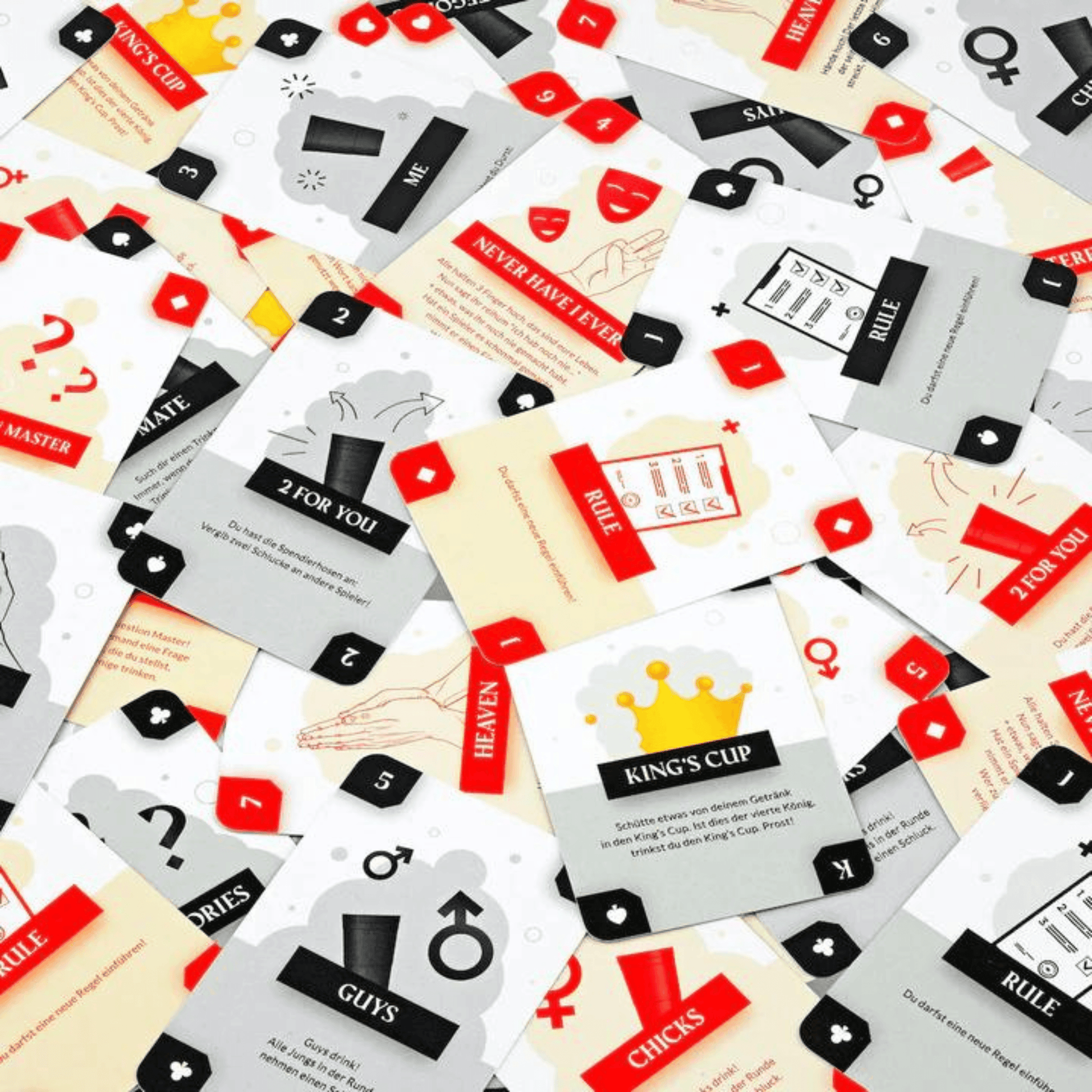 Dank des klar definierten Regelwerks gehören Diskussionen der Vergangenheit an. Kings Cup garantiert feucht-fröhliche Partien und ist ein Must-Have für jede Feier.