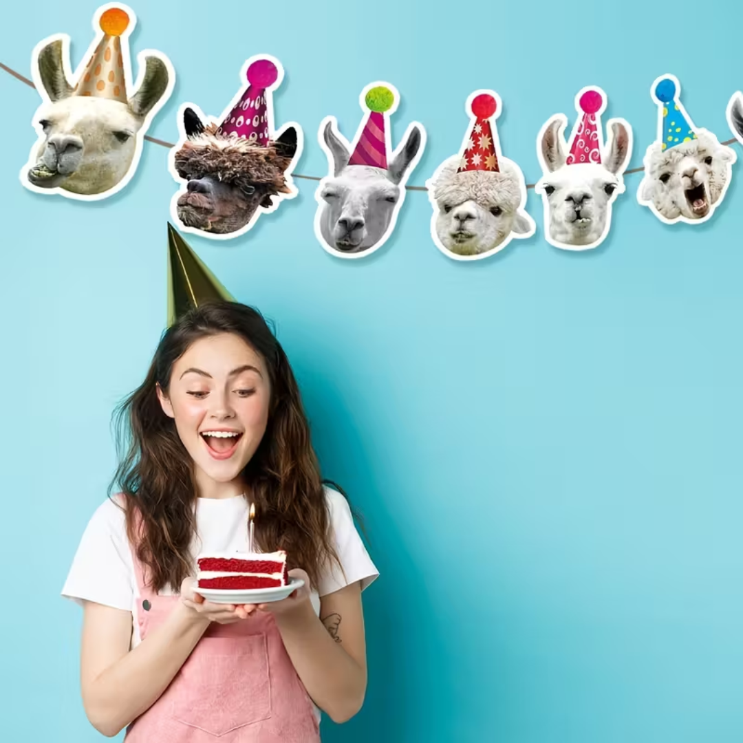 Die Lama Partygirlande bringt im Handumdrehen gute Laune in jeden Raum. Die detailreichen Alpaka-Gesichter sorgen für witzige Reaktionen und perfekte Schnappschüsse, während die flexible Schnur es dir erlaubt, die Girlande genau an deine Location anzupassen – kompakt über dem Sweet Table oder locker als Raumdeko. Mit Ballons, Konfetti und einem „Happy Birthday“-Banner kombiniert, entsteht ein rundes Deko-Set im Llama-Style.