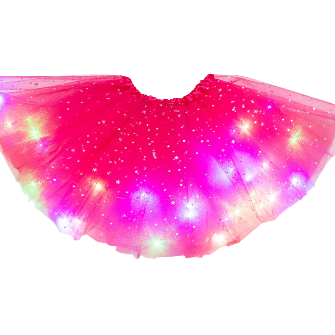 Mit seinem schillernden Design ist er die ideale Wahl für Festival-Looks, Motto-Partys oder kreative Bühnenoutfits. Ob kombiniert mit einem schlichten Top oder einem auffälligen Kostüm - der LED Tüllrock macht jedes Outfit zu einem Highlight.