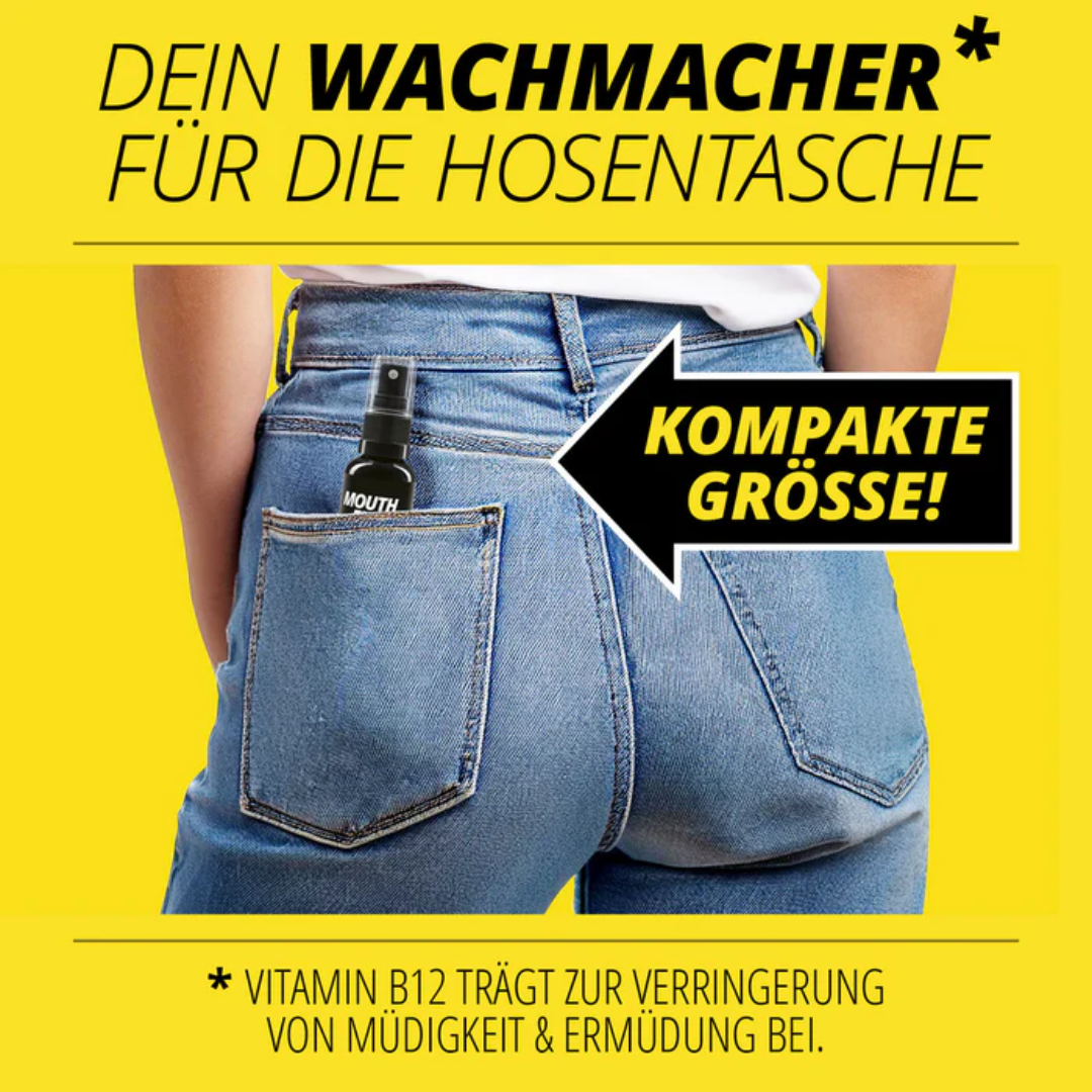 Mit 340 mg Koffein pro Tagesdosis (10 × 6 Sprühstöße) ersetzt das Spray locker Kaffee oder Energy-Drinks. Zusätzlich unterstützt Vitamin B12 die Verringerung von Müdigkeit und hilft deinem Nervensystem, auch nach einer langen Nacht auf Touren zu bleiben. Ob Festival, JGA, Clubnacht oder Gaming-Marathon – dieses Mundspray gehört in jede Partytasche.