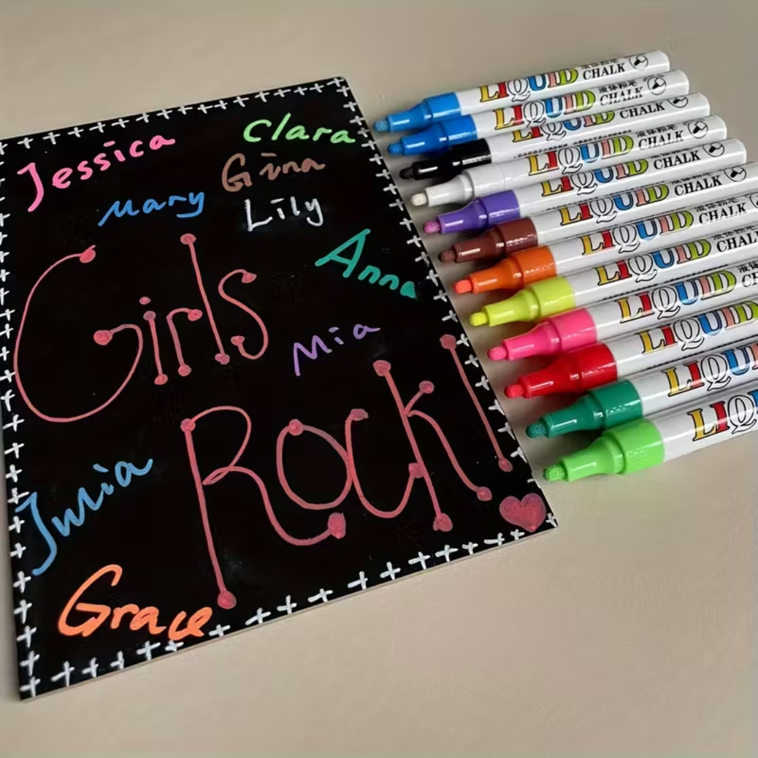 Neon Flüssigkreide-Marker – 12er Set, abwischbar für Tafel, Glas & Schilder (UV/Schwarzlicht-tauglich)