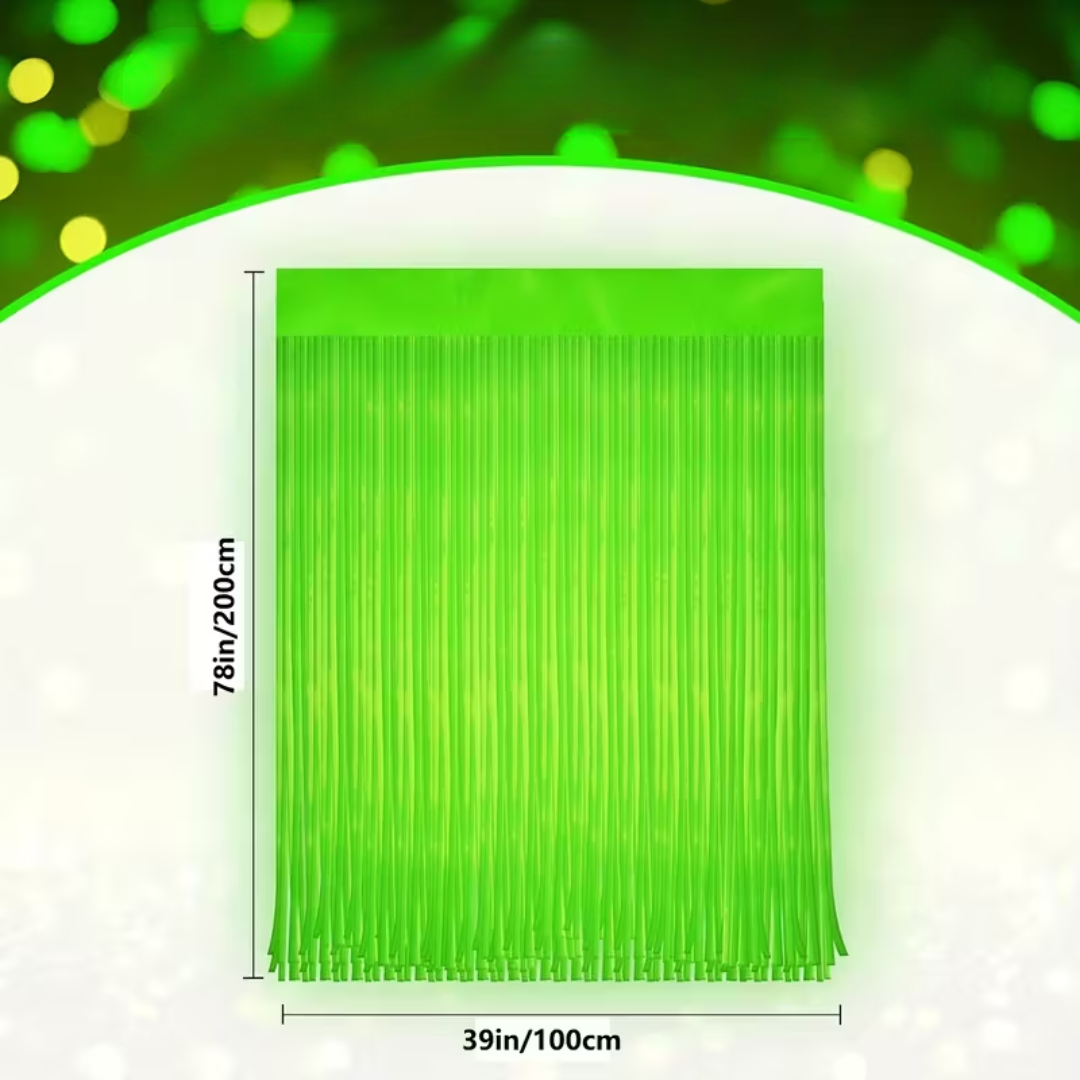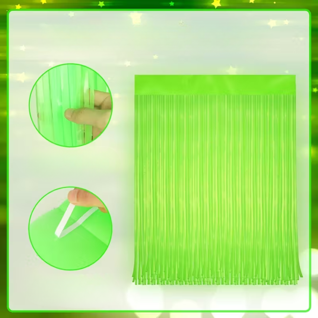 Setze deine Location in Sekundenschnelle in Szene: Der fluoreszierend grüne Quasten-Vorhang leuchtet kräftig unter Schwarzlicht und ist die ideale Kulisse für Glow-in-the-Dark- und UV-Partys.