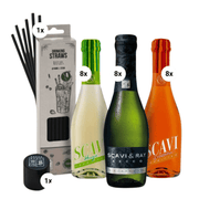 Der SCAVI & RAY Piccolo Mix ist die ideale Wahl für alle, die ihren Gästen eine stilvolle und abwechslungsreiche Auswahl an Drinks bieten möchten. Mit 24 edlen Piccolo Flaschen in drei beliebten Sorten bist du bestens ausgestattet für Hochzeiten, Geburtstage, WG-Partys, Motto-Partys und Junggesellenabschiede.
