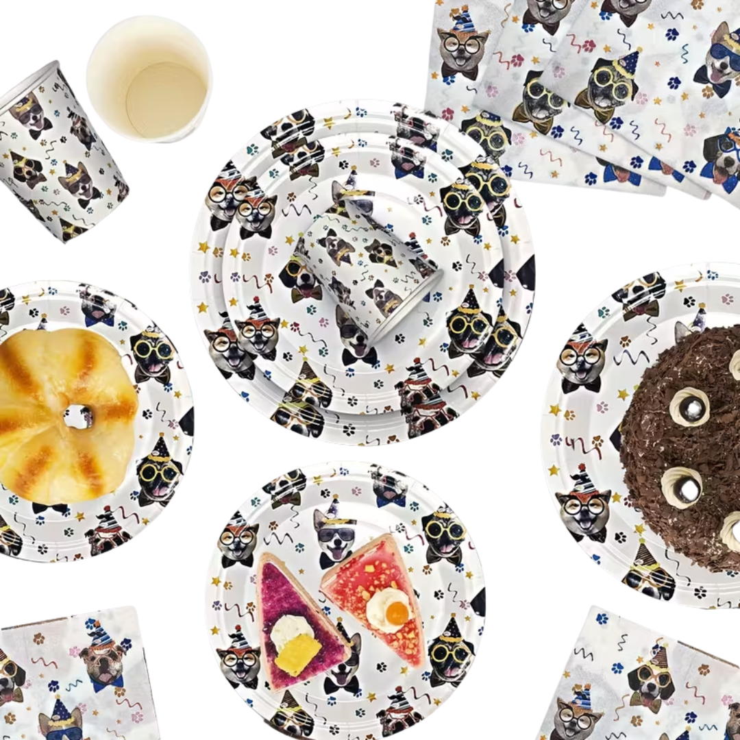 Feiere mit Stil und Spaß – das Partygeschirr-Set Party-Dog bringt tierisch gute Laune auf jede Feier! Mit fröhlichen Hunden, Sternen und Konfetti ist dieses Set perfekt für Geburtstage, WG-Partys oder Kinderfeiern geeignet.