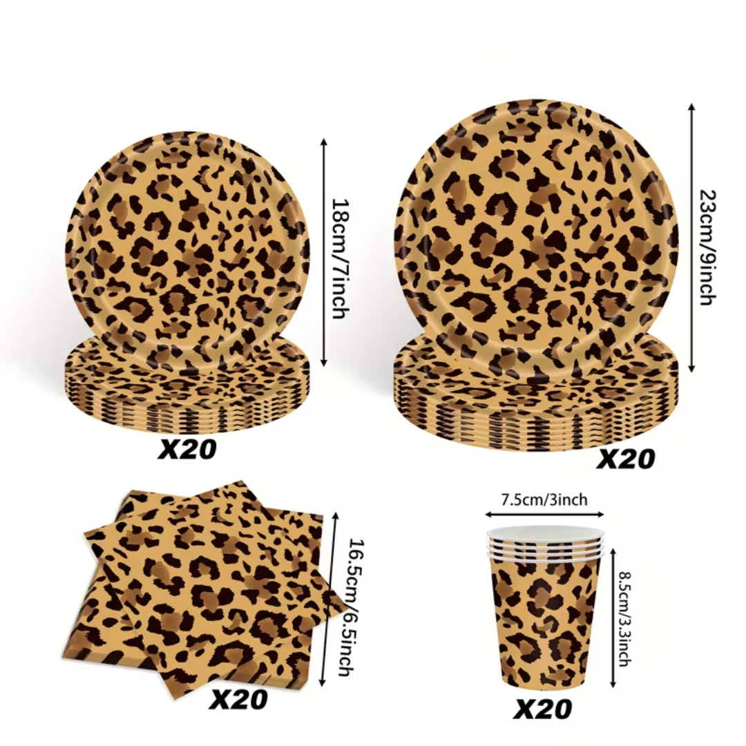 Partygeschirr-Set „Party-Leo“ – 80-teilig im Leopardenmuster (Papier)