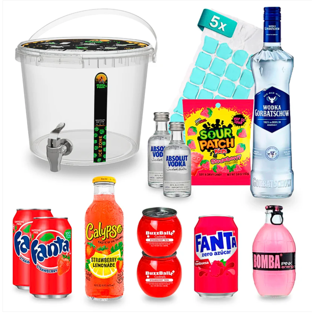 Der Sip Tank Berry Punch bringt echtes Sommerfeeling in jeden Becher! Diese köstliche Kombination aus Absolut Raspberry Vodka (oder Gorbatschow, je nach Bundle), Fanta Strawberry & Kiwi, Calypso Lemonade, BuzzBallz Strawberry Rita und einem Hauch Bomba liefert den ultimativen Partymix. Das Ergebnis: ein süßer, leicht saurer Beeren-Cocktail mit feinem Wodka-Finish – perfekt zum Teilen und Feiern.