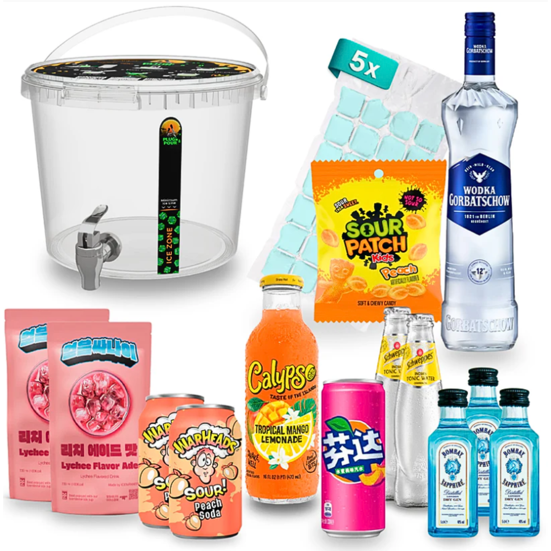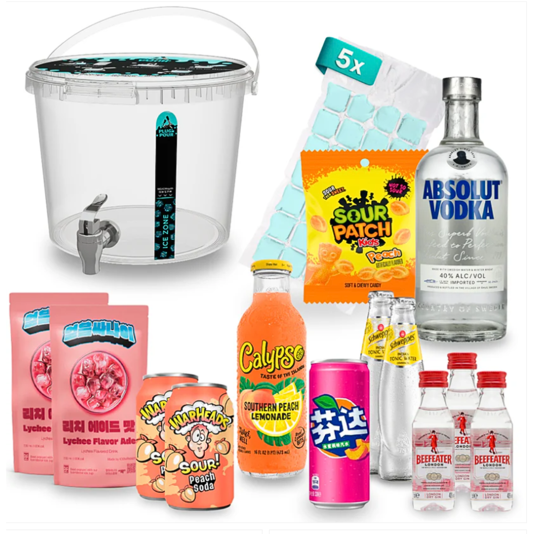 Der Sip Tank Peachi bringt die Sonne ins Glas! Diese harmonische Komposition aus Absolut Vodka (oder Gorbatschow, je nach Bundle), Litschi Ice, Sour Peach Soda, Calypso Peach, Fanta White Peach und einem Schuss Beefeater Gin sorgt für ein intensives Geschmackserlebnis zwischen süß, spritzig und leicht herb. Das Ergebnis: ein eiskalter, pfirsichfruchtiger Cocktail mit feinem Wodka- und Gin-Finish – perfekt zum Teilen mit Freunden oder als Highlight auf jeder Feier.